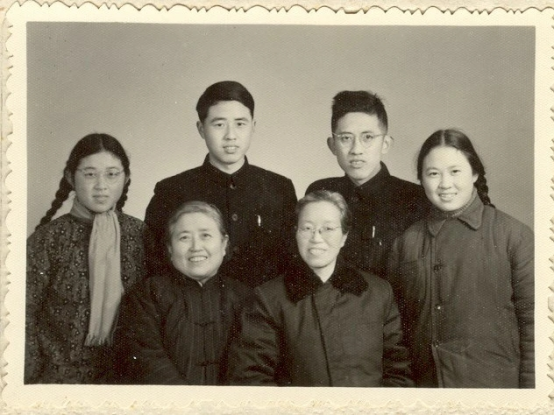 第一排左起:母亲张一贯、姨妈张一飞;第二排左起:钱易、大哥钱拙、二哥钱行、妹妹钱辉(6人均为教师)