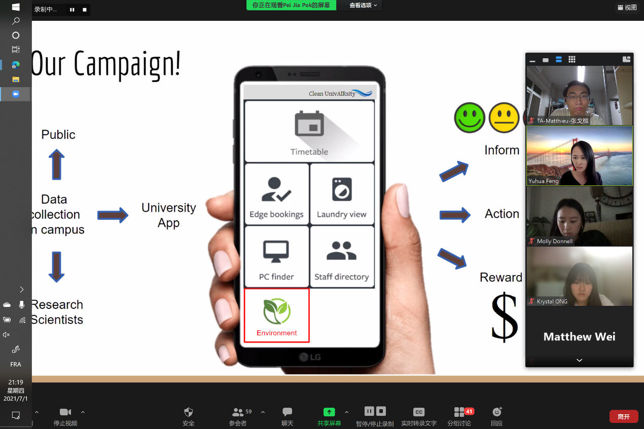 The period from 30 June to 4 July was an important time for the students to work in groups, clarify their ideas and polish their proposals. During these days, students not only had to overcome barriers including time difference in online communication when working in groups, but also had to complete two cross-pitches on 1 July and 3 July. During the brainstorming sessions, the initial vague ideas were gradually shaped and refined into concrete and feasible solutions with suggestions from the teachers during the two cross-pitches.